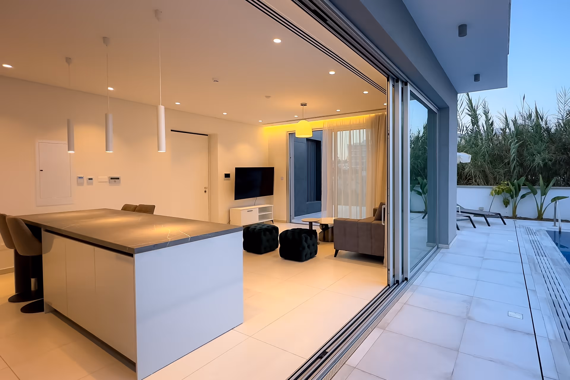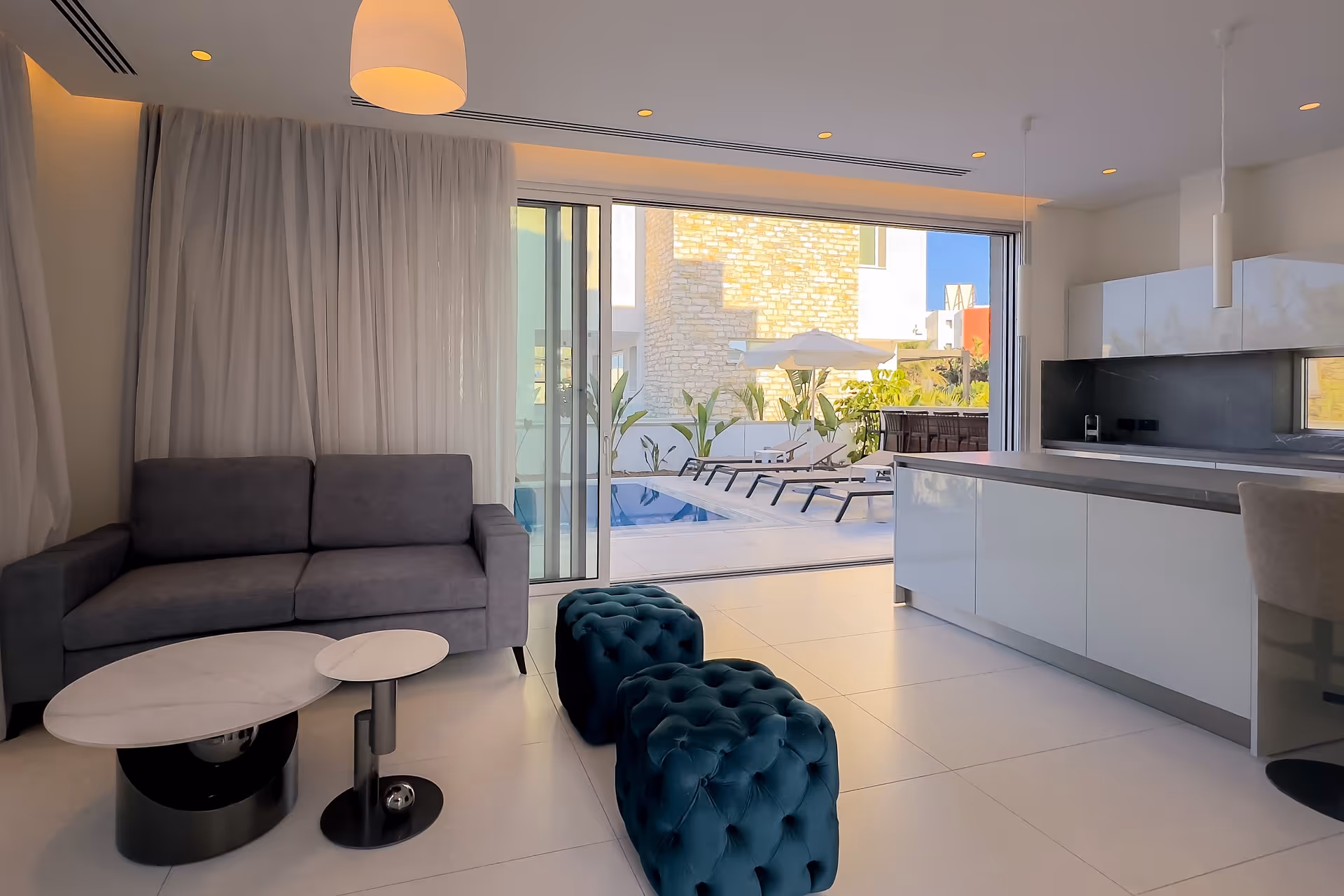 هذه الفيلا هي واحدة من ثمانية مساكن منفصلة ذاتية الخدمة توفر أقصى درجات الراحة في المناطق الداخلية والخارجية الأنيقة والمتطورة في أيا نابا. موقعه المتميز يعني التسوق والمطاعم والمقاهي والبارات والنوادي والمخابز والصيدليات والبنوك والمرافق الصحية وأقرب شاطئ رملي (أقل من كيلومتر واحد) كلها على مسافة قريبة. يلفت الأنظار التصميم الحديث والميزات الحجرية المزخرفة والمسبح الخارجي اللامع. تتوزع الفيلا على 3 مستويات، وتوفر منطقة للمعيشة وتناول الطعام بمخطط مفتوح مع مطبخ مجهز بالكامل في الطابق الأرضي. توجد ثلاث غرف نوم في الطابق العلوي (واحدة بحمام داخلي واثنتان بحمام مشترك)، بينما يعمل الطابق السفلي كوحدة خاصة مع غرفة نوم رابعة بحمام داخلي ومطبخ مجهز بالكامل.