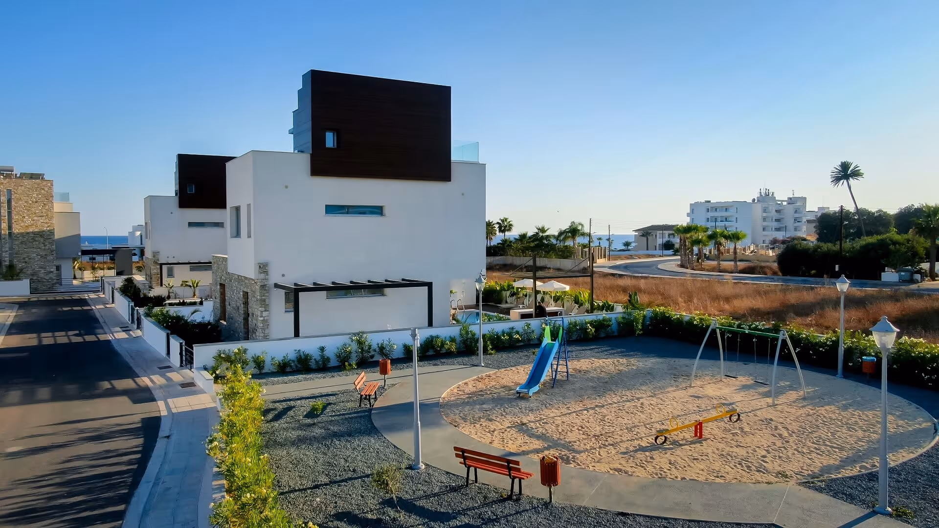 Эта исключительная резиденция является частью эксклюзивного закрытого комплекса, состоящего всего из восьми роскошных вилл, расположенного в оживленном центре Айя-Напы, всего в нескольких шагах от знаменитой монастырской площади и недалеко от сверкающего моря. Вилла, изящно расположенная на трех уровнях, состоит из просторных гостиных и современной кухни на первом этаже. На втором этаже расположены три уютные спальни, а на нижнем этаже — универсальное место для отдыха и четвертая спальня.